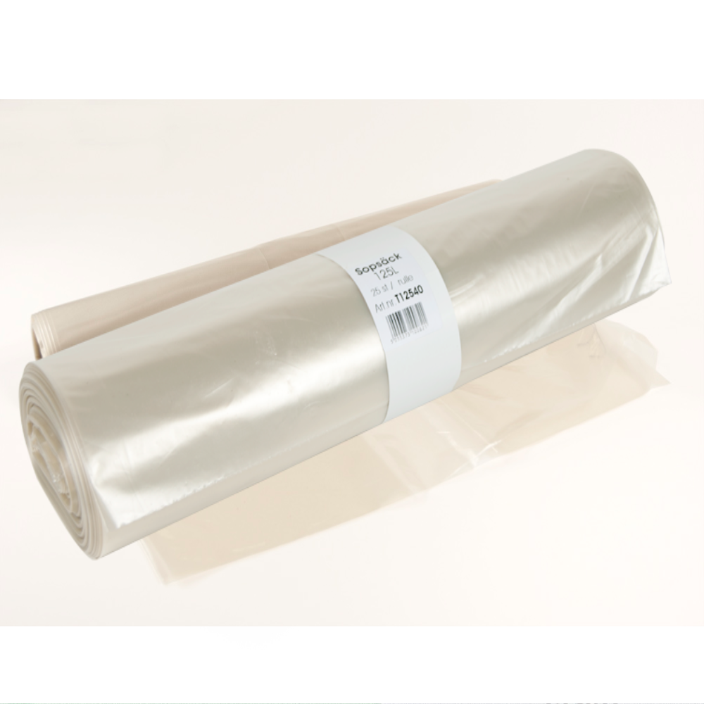 Sterke transparante afvalzak 125 L is geschikt voor zwaar afval en is gemaakt van LLD (Linear Low-Density Polyethylene), wat hem nog scheurbestendiger maakt dan het standaard gebruikte LDPE.