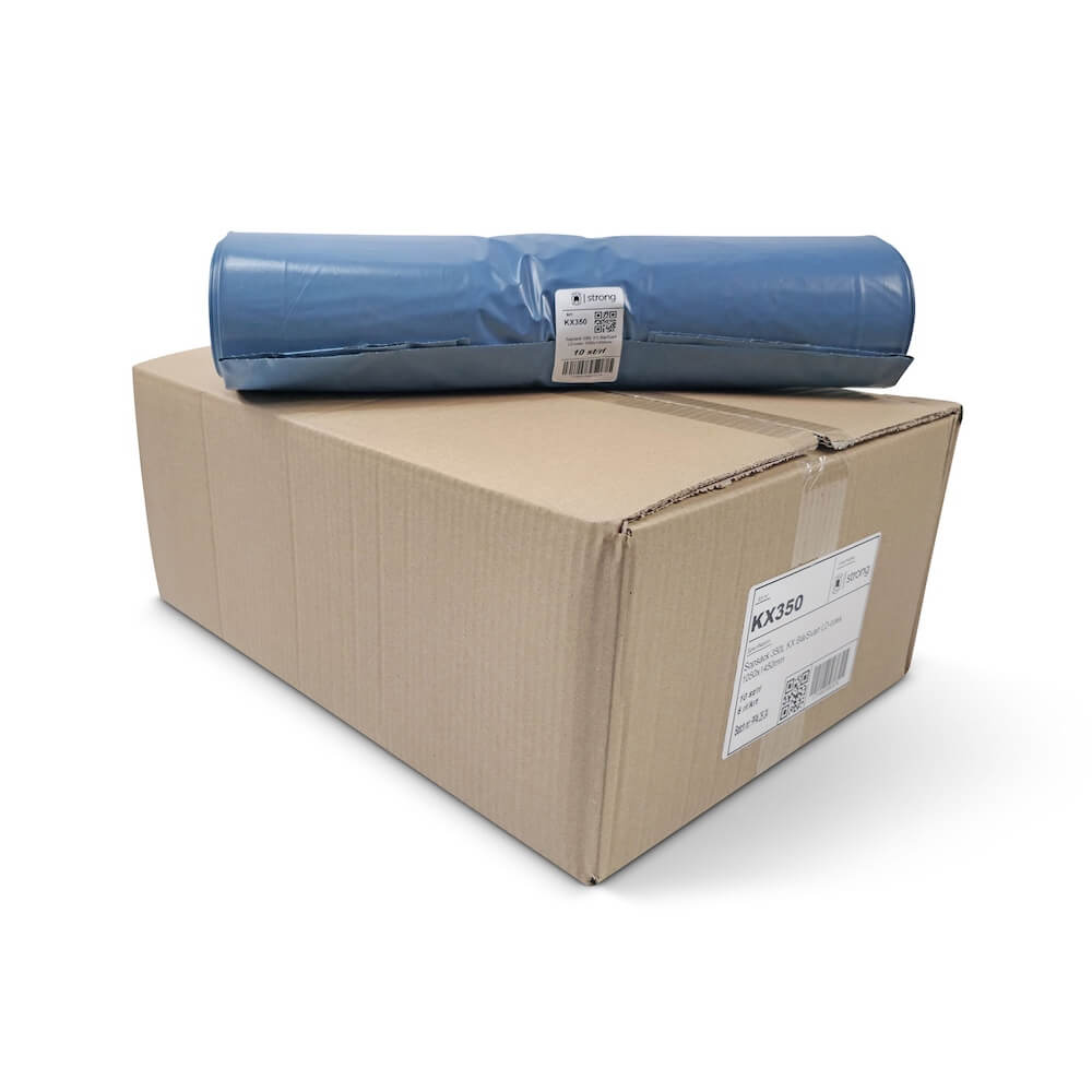 Deze zak heeft een meerlaagse constructie van 100% gerecycled LDPE is gefabriceerd door middel van een geavanceerde co-extrusie. De combinatie van blauwe en zwarte lagen zorgen voor een hoge weerstand tegen perforatie en scheuren. Het heeft een inhoud van 350 L en de dikte van 55 mµ zorgt voor een balans tussen stevigheid en flexibiliteit en maakt de zak zeer geschikt voor zwaar afval. Het combineert stevigheid en milieubewustzijn zonder in te leveren op prestaties. Veilige keuze voor industriële, gemeentelijke en professionele omgevingen. Combineert duurzaamheid, veiligheid en een lange levensduur. De verpakking wordt geleverd met 25 zakken per rol, 6 rollen per doos en 48 dozen per pallet dit alles voor een eenvoudige handeling en opslag.